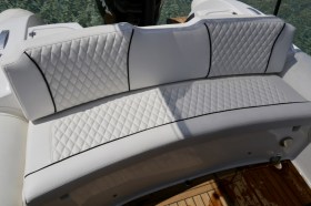 Shock Absorbing Helm Seats, High quality outdoor upholstery, Comfortable Swim Ladder, Fresh Water Shower,