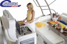 στην πλώρη,τραπέζι στην καμπίνα ,σποτ στην καμπίνα, σποτ στο μπάνιο, ψυγείο 50 λτ, 2 μάτια κουζίνας (χωρίς τη σύνδεση αερίου),